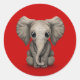 Pegatina Redonda Bebé lindo Elefante Calf sentado, rojo