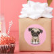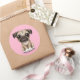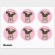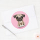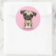 Pegatina Redonda Bebé lindo pug perro cachorro en rosa