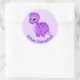 Pegatina Redonda Bebé morado lindo Brontosauro Dinosaurio