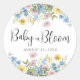 Pegatina Redonda Bebé pastel floral en una invitación acuarela en f