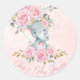 Pegatina Redonda Bebé Pink Floral Cute Elephants Baby Shower
