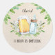 Pegatina Redonda Bebé prepara botellas de Baby Shower con vítores