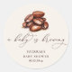 Pegatina Redonda Bebé prepara café género Baby Shower neutro