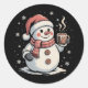 Pegatina Redonda Bebida de Snowman café Invierno Nochebuena de Snow