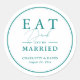 Los verde azulados elegantes comen bebidas y son pegatinas redondos bodas casados.