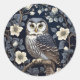 Un adorable búho blanco-nasal del norte rodeado de flores de luna delicadas en un fondo marino. Este clásico pegatina redondo le da un toque original y encantador a cualquier superficie.