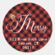 Pegatina Redonda Bee Merry, Green Buffalo Check Holiday Address