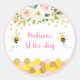 Pegatina Redonda Bee Pink Gold Floral Birday