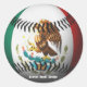 La bandera mexicana cubriendo la superficie de una pelota de béisbol.