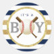 Pegatina Redonda Béisbol Navy franjas azules Baby Shower Favor