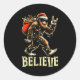 Pegatina Redonda Believe Bigfoot Sasquatch Santa Reindeer Christmas
