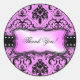Pegatina Redonda Bella Damasco morado y negro gracias