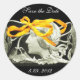 PEGATINA REDONDA BELLEZA ELEGANTE / DAMA CON BOW AMARILLO Y FLORES
