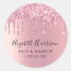 pegatina de moda para proveedores de servicios de belleza que presentan goteos en purpurinas rosados falsos y tu nombre en un guión moderno contra un fondo de Relieve metalizado falso rosa. Perfecto para salones de belleza, maquilladores, estilistas y esteticistas.