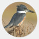 Un pescador de Belted Kingfisher descansa en el Refugio Nacional de Vida Silvestre St. Marks. Notas: Longitud: 12 pulgadas Pájaro grande, de piernas cortas, de cabeza grande, de gran tamaño Cuello sobre el agua y se lanza de cabeza hacia el agua en busca de peces Cabeza azul pizarra, con punto blanco cerca de las lores Cubierta blanca, garganta y cuello Banda dorsal azul Slate espalda azul y coberturas ascendentes con pequeñas manchas blancas Slate cola azul con numerosas bandas oscuras y ligeras