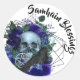 Pegatina Redonda Bendiciones por el cráneo gótico y el morado de Ra