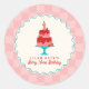Pegatina Redonda Berry 1er cumpleaños Strawberry Cake Checkerboard