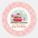 Pegatina Redonda Berry 1er cumpleaños Strawberry Camper Checker