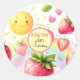 Pegatina Redonda berry arcoíris de fresa primer cumpleaños