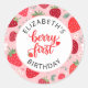 Pegatina Redonda Berry First Cute Primer Cumpleaños Chica de fresas