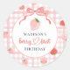 Berry First Strawberry Pink Gingham 1er cumpleaños Pegatina redondo clásico