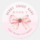 Pegatina Redonda Berry Sweet Baby Coquette Bow Pink Watercolor