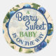 Pegatina redondeado de temática de arándano de la ducha de bebé, cambia el texto a lo que quieras cuando pidas.