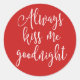 Tipografía moderna de escritura de pincel "Bésame siempre buenas noches" sobre un fondo rojo que se puede personalizar a cualquier otro color.