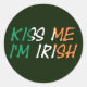 Pegatina Redonda Bésame soy irlandés sobre la bandera irlandesa