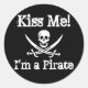 Pegatina Redonda ¡Bésame! Soy un pirata