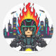 Pegatina de bicicletas futurista al estilo Cyberpunk con luces de neón, llantas brillantes y un diseño elegante y agresivo, perfecto para la ciencia ficción y la tecnología de la calle.