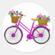Pegatina Redonda Bicicleta Rosa Con Canasta De Flores -