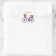 Pegatina Redonda Bicicleta Violeta Con Cesta De Flores Gracias