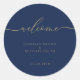 Pegatina Redonda Bienvenida Boda Simple Escritura Dorada Navy