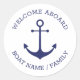 Pegatina Redonda Bienvenida personalizado Aboard ancla náutica mari