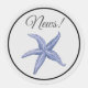 Este pequeño sello para sobres pegatina redondo está diseñado para coincidir con la tarjeta de presentación de nacimiento "Welcome Wee Baby" y el sobre disponible en esta tienda. Tiene el color gris claro como invitación, así como un ilustracion de estrella de mar azul pastel, todo rodeado de un marco negro redondo y delgado.