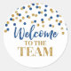 Pegatina Redonda Bienvenidos al equipo de Blue Gold Confetti