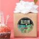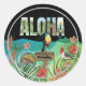 ¡Agrega un toque vibrante de paraíso isleño a cualquier cosa con esta llamativa pegatina redonda! Con nuestro popular diseño "ALOHA", muestra exuberante follaje tropical, flores coloridas, un tucán exótico, un cardenal encantador y una tortuga serena, todo bajo un letrero de "Bienvenido al Paraíso".