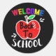 Pegatina Redonda Bienvenidos De Nuevo A La Escuela Divertidos Profe