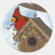 Esta escena del invierno de bonito muestra a nuestros amigos envenenados compartiendo el espíritu de la temporada. El cardenal masculino está decorando su casa de pájaro con una cuerda de luces. Consulte los sellos y etiquetas de coordinación.