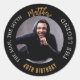 A classic black background. Text: The Man, The Myth, The Legend. Personalize and add his name, age and photo. White and golden text.