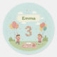 Pegatina Redonda Birthday Picnic, Cute Retro Style, Age 3