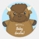 Pegatina Redonda Bison Buffalo Baby Shower Blue