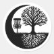 Disc golf themed stickers. Black and white disc golf basket and tree roots silhouette.