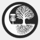 Disc golf themed stickers. Black and white disc golf basket and tree roots silhouette.