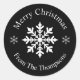 Pegatina Redonda Black And White Snowflake Merry Christmas Modern