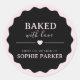 Pegatina Redonda Black Blush Pink Baked With Love Scallop Sticker