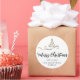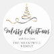 Pegatina Redonda Black Gold Ribbon Tree Merry Christmas Script