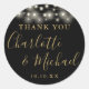 El pegatina redondo clásico, con luces de cuerda de bonito y nombres de estilo distintivos, es un regalo para las bodas en negro y oro. Personalice con sus detalles especiales de agradecimiento en la moderna tipografía blanca. Diseñado por Thisisnotme©
