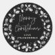 Pegatina Redonda Black Holly Wreath Merry Christmas